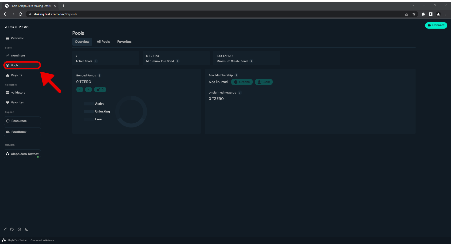 2. Head to the staking dashboard and navigate to the **'Pools'** tab.
